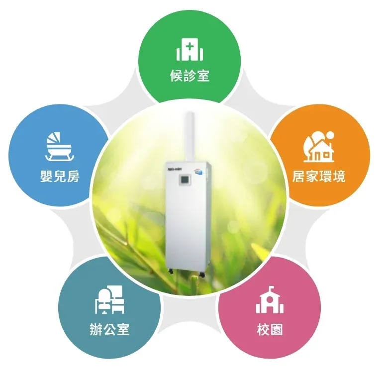 細緻的霧氣、噴灑於空間中能降低病菌感染及消臭。