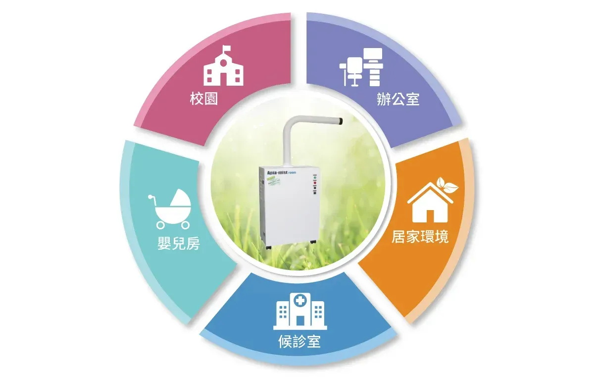 細緻的霧氣、噴灑於空間中能降低病菌感染及消臭。