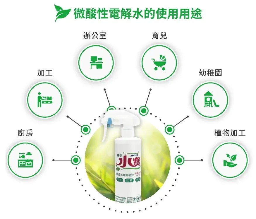 .次氯酸作用後即還原成水,無刺激肌膚,無毒又安全